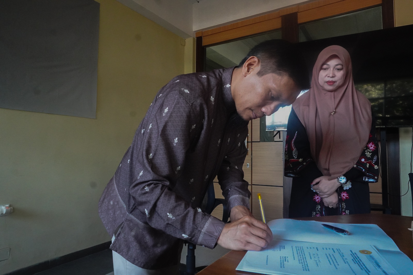 Penandatanganan berita acara serah terima mahasiswa PLP oleh PMA bidang Pendidikan