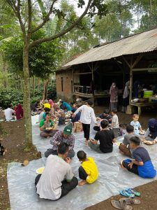 Menu yang disiapkan pun bermacam macam, ada juga yang membawa makanan khas di rumahnya masing-masing. Menu hidangan yang disiapkan ada sop domba, gulai domba, sate domba berikut makanan ringan dan makanan penutupnya. Sesampainya di kebun, makanan disiapkan untuk dihidangkan. Ada yang mulai bercengkrama, bercerita kondisi perjalanan, ada yang jalan jalan di sekitar kebun sambil menunggu sate domba yang dibakar siap untuk dihidangkan. Berbagi peran dengan suasana akrab kekeluargaan, momen yang langka karena hanya beberapa kali saja bisa dilaksanakan dalam tentang waktu setahun. Anak anak pun bergembira, apalagi diadakan perlombaan memetik kopi. Siapa yang paling banyak metik buah kopi, dialah pemenangnya.